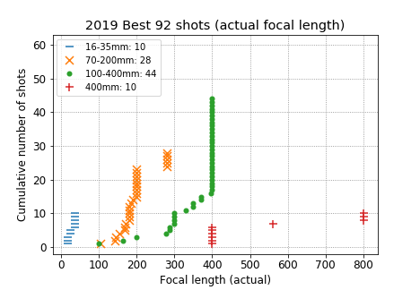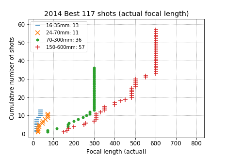 For me, covering the 24-300mm range would not have been enough (whether with a single superzoom or with two lenses, 24-70mm and 70-300mm). 6% of my best shots were wider than 24mm, and fully 50% were longer than 300mm.
